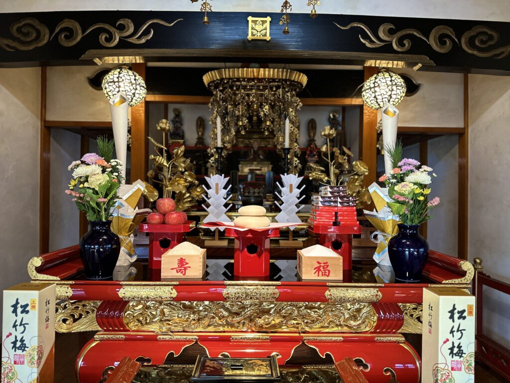 その後は年越しで宿泊してくれていた海外からのお客様に、本堂でプライベートな新年の祈祷法要を行いました。